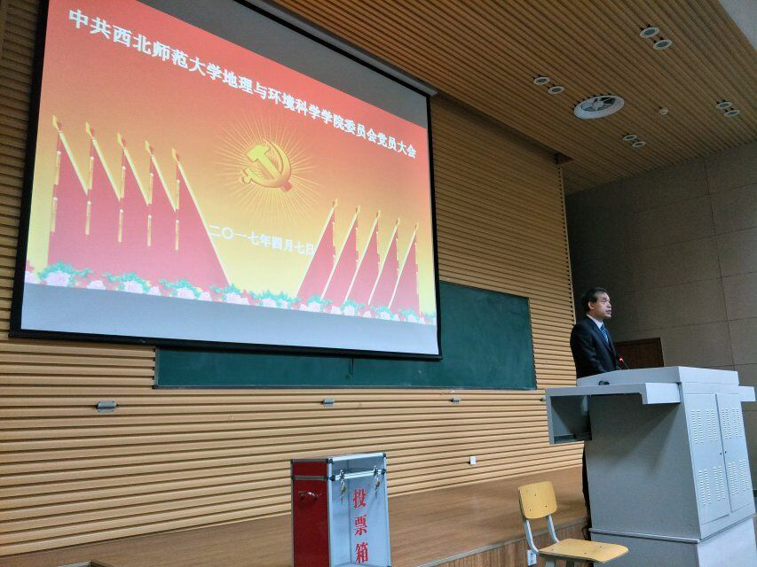 贾书记在工作报告中,对学院党委四年来的工作进行了回顾和总结,找出了工作中存在的不足,并对今后如何高效地开展基层党建工作确定了目标和任务。他强调,学院党委将进一步强化理论武装,全面贯彻落实高校思想政治工作会议精神,进一步夯实基层组织建设,深化全面从严治党,加强学院班子自身建设,持续抓好党风建设,加强学院的文化建设,继续高举中国特色社会主义的伟大旗帜,认真贯彻落实党的十八大、十八届三中、四中、五中、六中全会精神以及习近平总书记系列重要讲话精神和治国理政新理念新思想新战略,发挥学院各级党组织的战斗堡垒作用和全体共产党员的先锋模范作用,团结带领全院师生员工,抢抓机遇、求真务实、开拓创新,为学院的建设和发展朝着确定的宏伟目标而努力奋斗!
