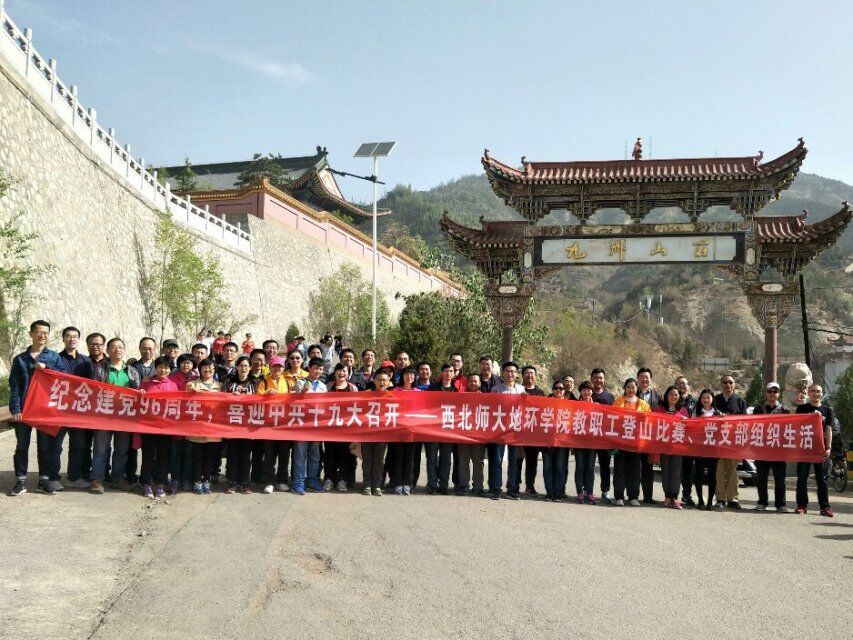 为了庆祝建党96周年,喜迎党的十九大召开,丰富学院教职工的文化生活,对教职工进行爱国主义教育,加强体育锻炼,5月6日,我院组织全院教职工40余人在九洲台举行了“庆祝建党96周年,喜迎中共十九大召开——西北师大yL23411永利官网登录教职工登山比赛、党支部组织生活”。