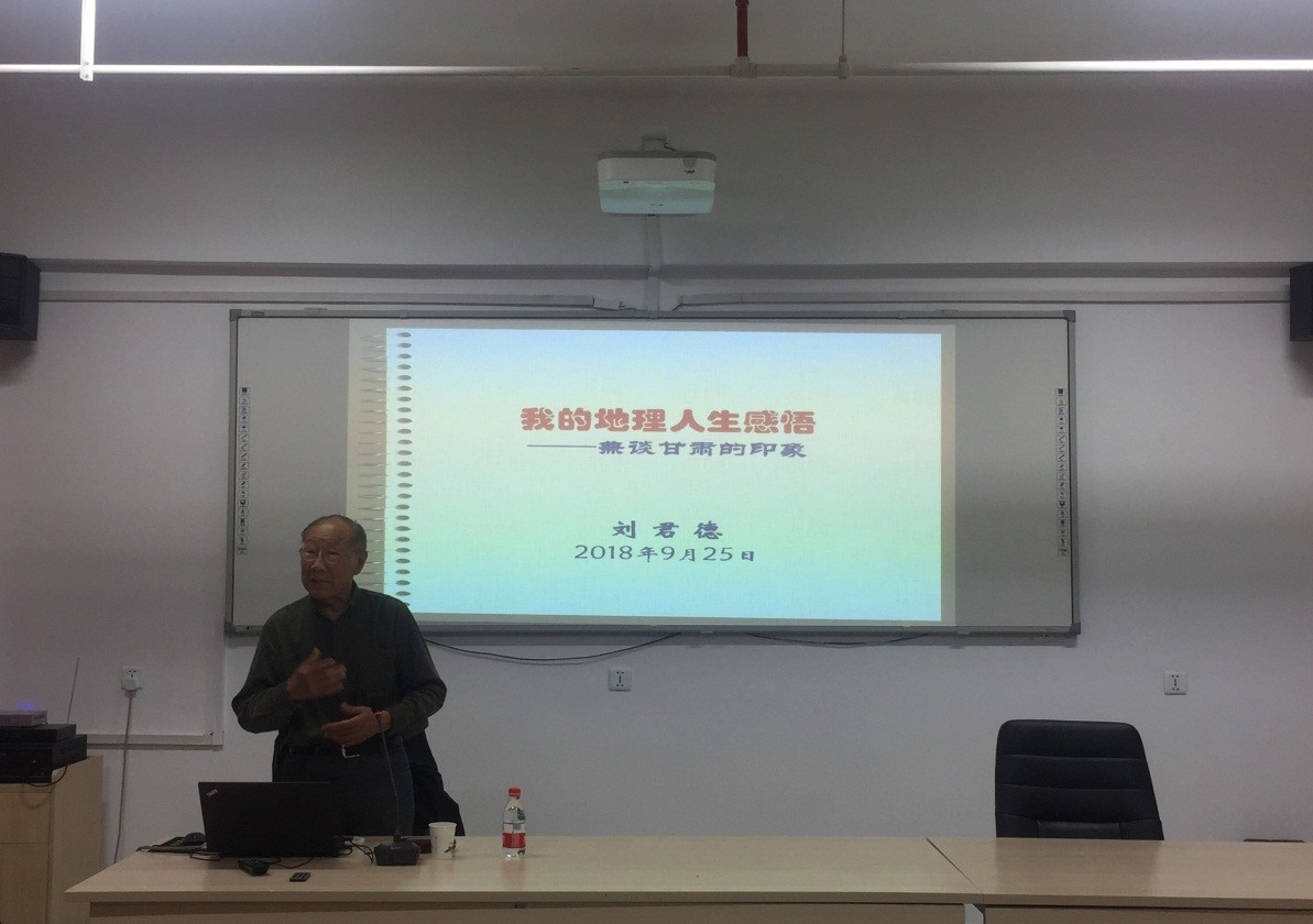9月25日下午,应学院邀请,华东师范大学刘君德教授来学院进行学术交流,并作了题为《我的地理人生感悟——兼谈甘肃的印象》的学术报告,学院120余名师生参加了此次报告会,报告由副院长马利邦副教授主持。