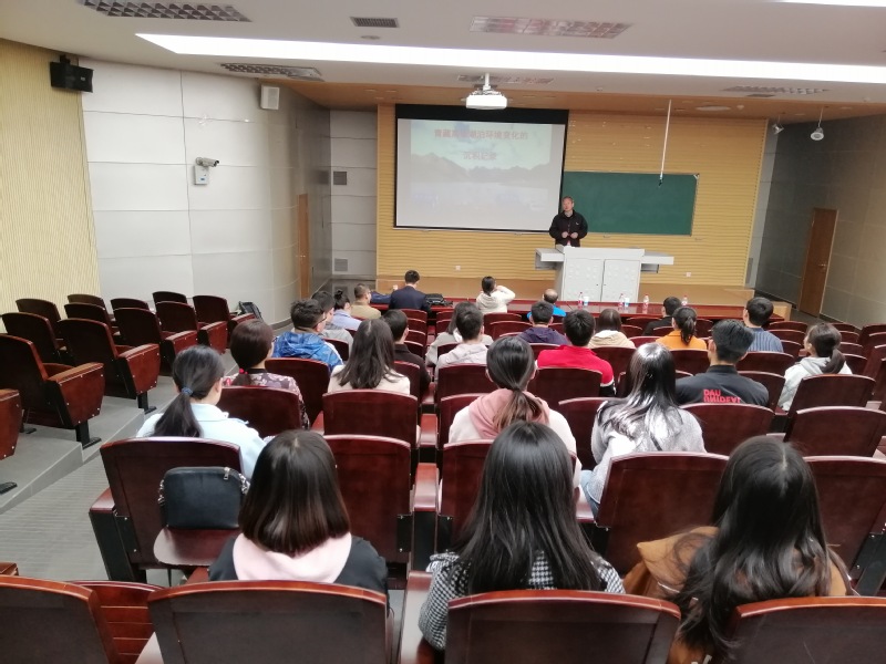 李世杰研究员围绕“青藏高原湖泊环境变化的沉积记录”这一报告主题,详细介绍了在青藏高原开展湖泊岩芯钻取、青海湖水深测量等野外科学考察过程,并就青藏高原古气候古环境演变规律重建和青海湖水量变化及未来发展趋势进行了系统阐述。报告结束后,与会师生与李世杰研究员进行了热烈深入的探讨和交流。