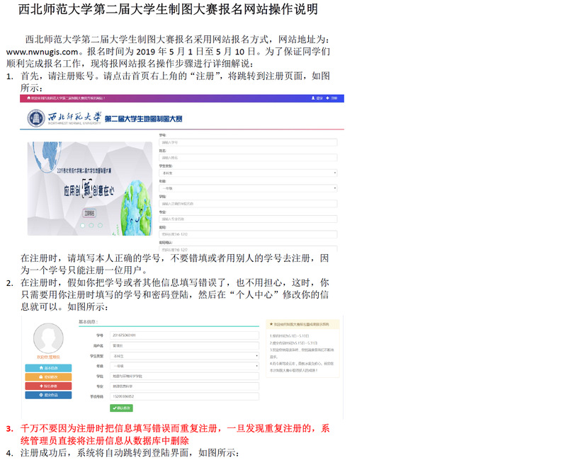 西北师范大学第二届大学生制图大赛报名网站操作说明