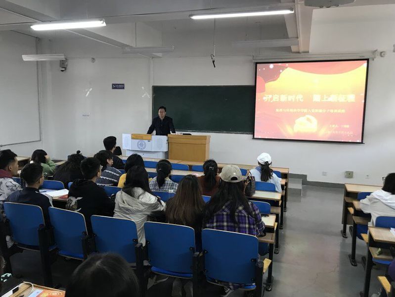 在随后的集中培训过程中,学院党委书记于国建给全体入党积极分子作了题为《开启新时代 踏上新征程》的报告。报告对党的一大到党的十九大进行了简单回顾,阐述了每一次代表大会的时间、地点、主题等内容,重点介绍了党的十九大报告相关内容,介绍了习近平新时代中国特色社会主义思想相关精神,介绍了“四个自信”、“四个意识”相关内容,并要求青年学生坚定理想信念、担负历史使命、争做“四有”新人、为实现中华民族伟大复兴的中国梦贡献自己的青春和智慧。