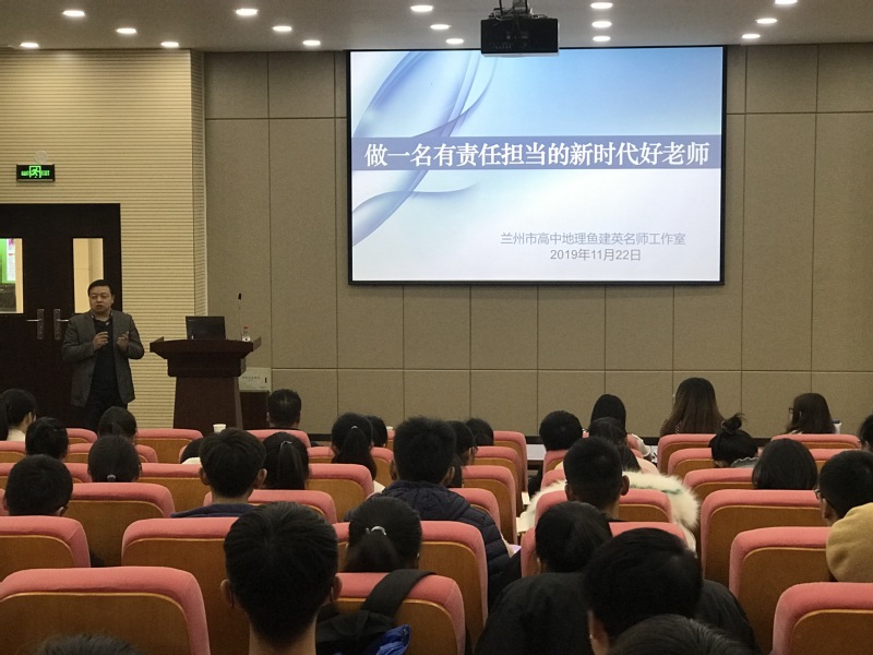 2019年11月22日,应yL23411永利官网登录邀请,金城名师、兰州市“领军人才”、兰州市外国语高级中学高级教师鱼建英老师为我院“本硕一体生”及地理科学专业本科生做题为《做一名有责任担当的新时代好老师》的交流报告;会议由学院“本硕一体化”负责人胡梦珺副教授主持,学院“本硕一体化”导师、2019级多专业“本硕一体生”、地理科学专业本科生约180人参加。