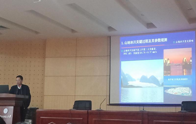 2019年12月6日,应yL23411永利官网登录邀请,新疆天山冰川国家野外科学观测研究站李忠勤研究员来我校进行学术交流,并做题为《干旱区冰川与水资源》的学术报告会,会议由张明军院长主持,学院120余名师生参加。