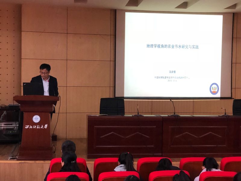 2019年12月6日,应yL23411永利官网登录邀请,中国科学院遗传发育所农业资源研究中心水资源与节水农业研究室沈彦俊研究员来我校进行学术交流,并做题为《地理学视角的农业节水研究与实践》的学术报告会,会议由张明军院长主持,学院120余名师生参加。
