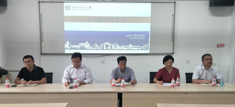 7月24日下午,我院召开教职工大会,宣布西北师范大学党委关于学院院长的聘任通知。学校党委常委、副校长张生勇,学校党委组织部副部长(正处级)周琳辉出席会议,学院全体教职工参加会议。会议由学院党委书记于国建主持。