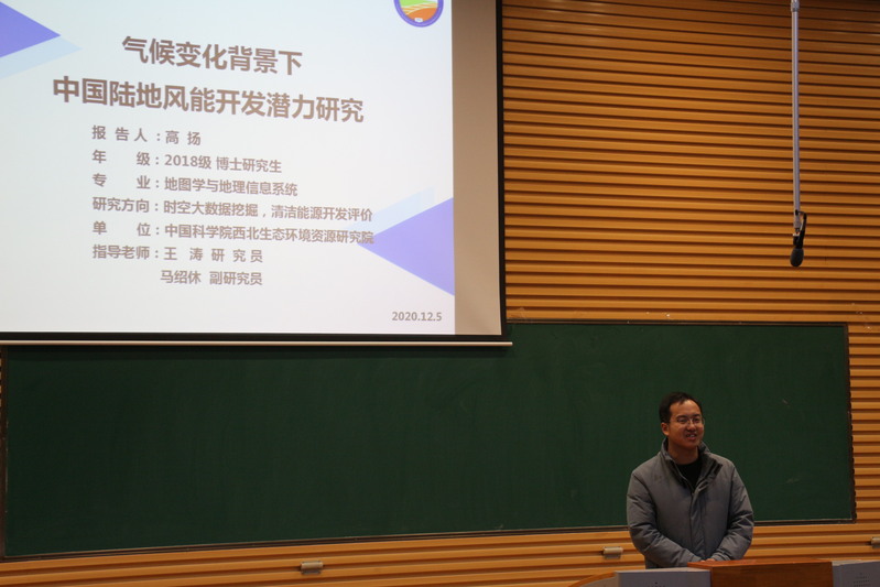 2020年12月4日,应yL23411永利官网登录邀请,中科院西北生态环境资源研究院博士生高扬来我院作题为《气候变化背景下中国陆地风能开发潜力研究》的学术报告。报告会由姚晓军副院长主持,学院200余名师生参加。