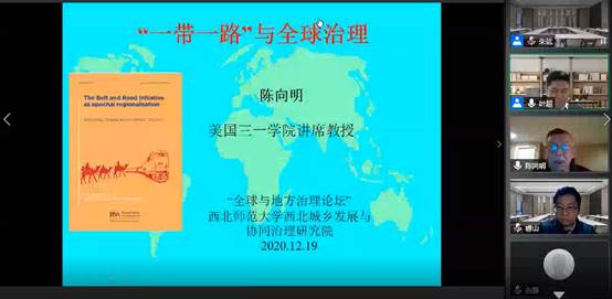 2020年12月19日,由西北师范大学西北城乡发展与协同治理研究院和地理与环境科学学院联合举办的首届西北城乡发展与协同治理研究院前沿论坛在线召开。论坛以“全球与地方治理”为主题,由西北师范大学西北城乡发展与协同治理研究院院长叶超教授主持,来自国内外的320余师生在线参加了此次论坛。