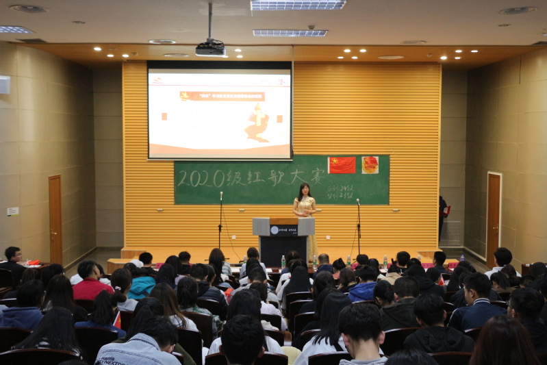 为了庆祝中国共产党成立100周年,深入学习习近平总书记在“党史学习教育动员大会”上的重要讲话精神,加强广大青年学生的思想教育,培养全院学生爱党、爱国的情感,弘扬红色文化,传承红色精神,3月30日晚,学院组织2020级全体学生在新校区教学楼第一报告厅开展了“红色文化伴我行”红歌比赛主题团日活动。2020级班主任白静、刘向军、修丽娜,辅导员田洪宇、张丽萍、陈亮、李宏亮,校团委督导员,研究生会负责人及研究生团支部书记担任评委,2020级300余名学生参加了主题团日活动。