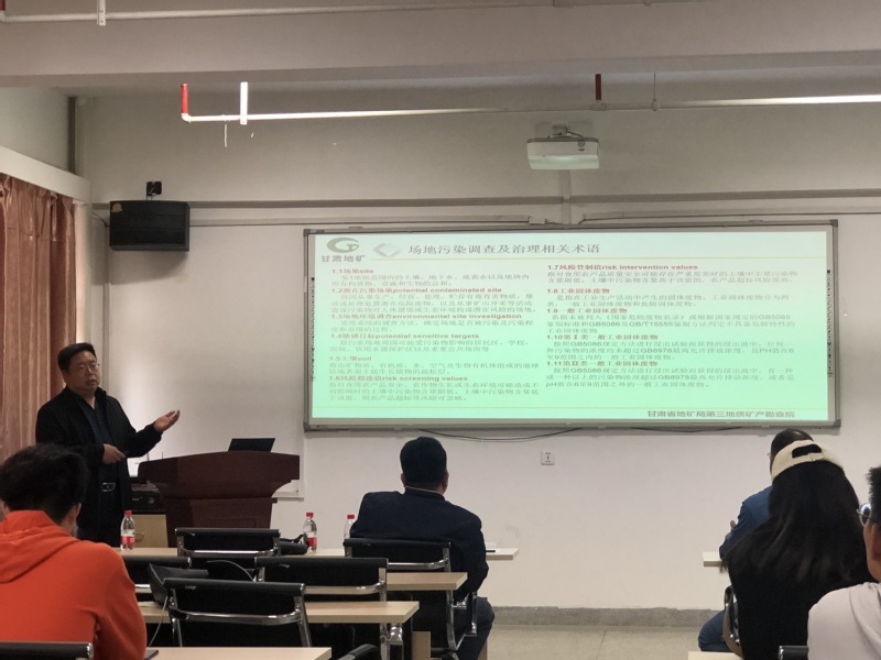 2021年5月22日,甘肃省地质矿产勘查开发局第三地质矿产勘查院马延龙高级工程师应邀来我院做题为《水土污染调查及修复业务探讨与实践—以地勘单位为例》学术报告。报告会由张松林教授主持,学院部分师生参加。