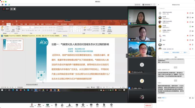 2021年5月29日至5月30日,第一届Hydro90会议线上召开。本次会议设置气候变化及人类活动对流域生态水文过程的影响、树木年轮记录的水循环历史、卫星技术(重力卫星、测高卫星等)在水文领域的应用拓展或前景、人工智能/机器学习/深度学习在水文领域的现状和前景、极端天气气候事件(高温干旱/暴雨洪水)的时空特征、机制与预测等8个议题。我院徐世琴老师为气候变化及人类活动对流域生态水文过程的影响议题的召集人,来自加州大学洛杉矶分校、德克萨斯州立大学奥斯汀分校、中山大学、南京大学、河海大学等国内外高校与研究院所的学者做了精彩报告,并开展了广泛、深入的交流。