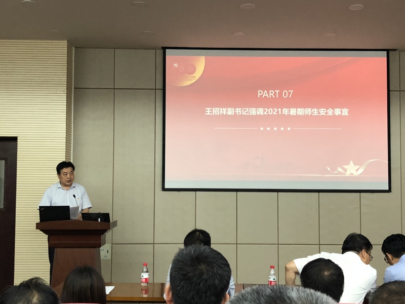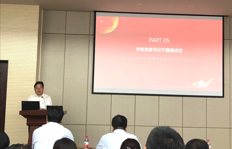 于国建书记代表学院党委和行政,向受到表彰的集体和个人表示祝贺,向一直以来为学院事业发展付出辛勤劳动的师生员工表示衷心的感谢。他指出,学院在庆祝中国共产党百年华诞的重大时刻召开这个表彰大会,一是隆重庆祝中国共产党成立100周年;二是对涌现出的优秀个人和先进集体进行表彰奖励;三是为新发展的预备党员举行宣誓仪式,让老党员重温入党誓词;四是通过这次表彰大会,再一次总结回顾学院的发展历程,再一次诠释学院的十四五发展规划,为学院高质量发展鼓劲打气、指明方向。
