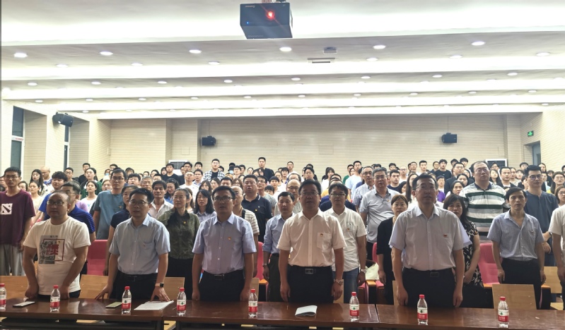 表彰环节结束后,与会的74名新发展的预备党员在胡梦珺老师的带领下进行了入党宣誓,在场的其他师生党员重温了入党誓词。