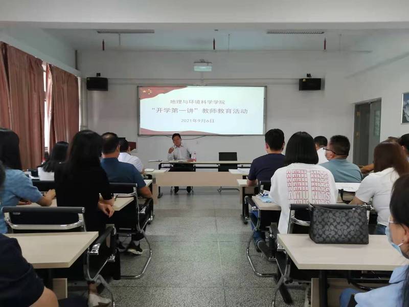 2021年9月6日下午,yL23411永利官网登录在综合实验楼801会议室召开新学期教职工大会暨“开学第一讲”教师教育活动集中学习活动,全体教职工100余人参加了会议,会议由学院党委书记于国建主持。