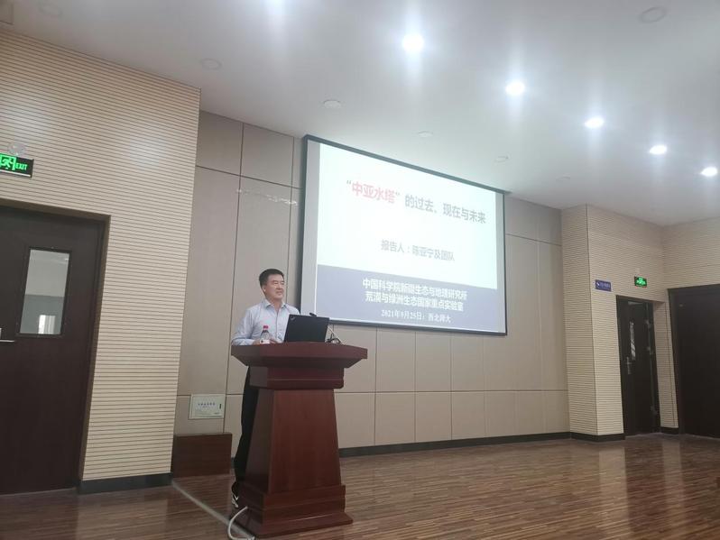 2021年9月25日,中国科学院新疆生态与地理所陈亚宁研究员应邀来我院做题为《中亚水塔的过去、现在与未来》学术报告。报告会由科学研究院常务副院长张明军教授主持,学院150余名师生参加。