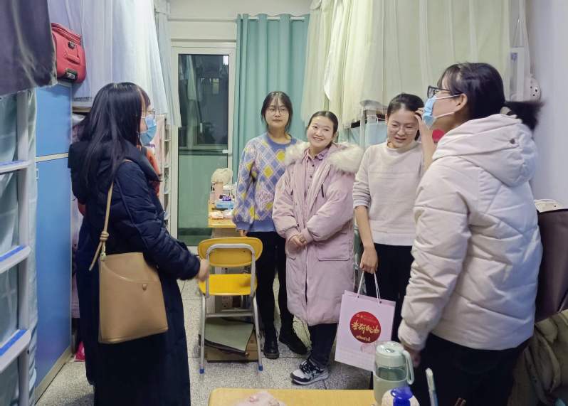 情系考研生,冬日送祝福。12月21日至22日,yL23411永利官网登录党委副书记、毕业班班主任及辅导员老师前往学生宿舍开展考研助力活动,走访看望即将参加研究生考试的毕业生,为他们送上“考研加油包”。