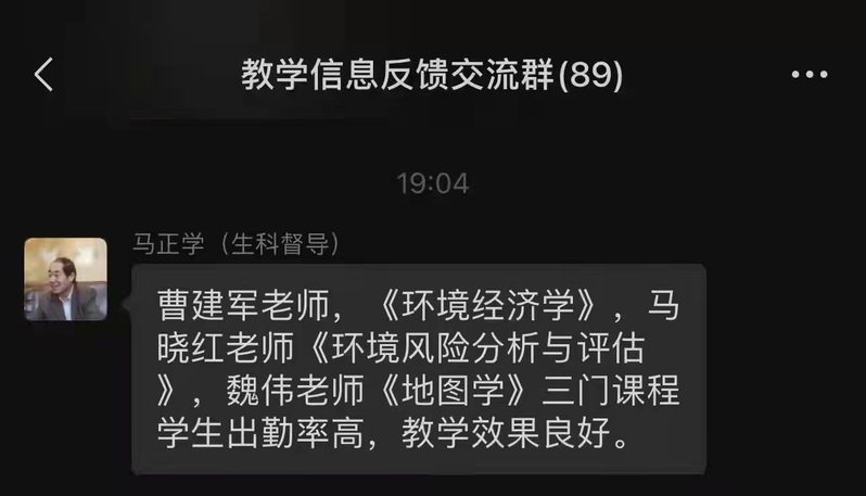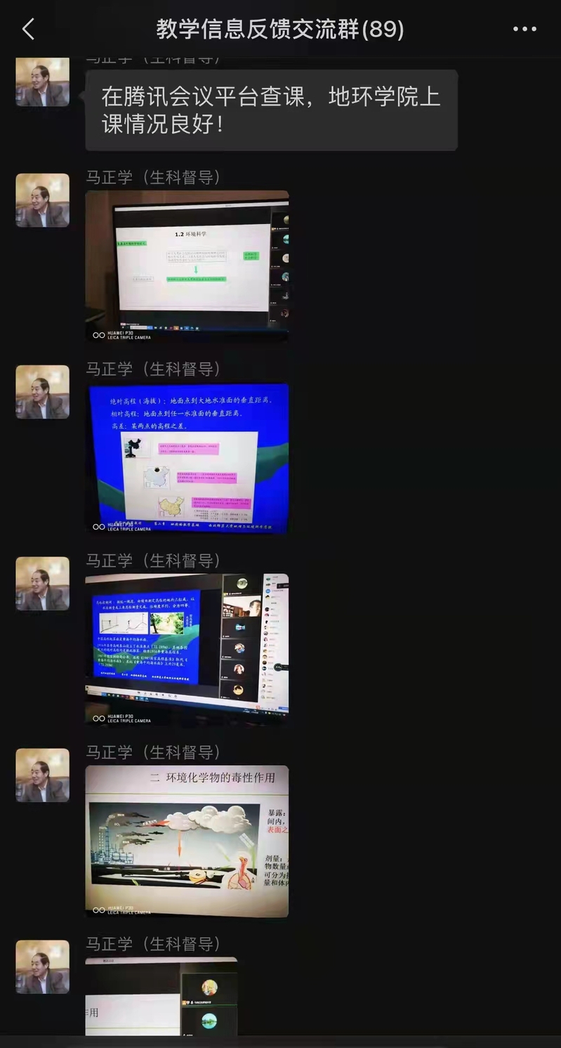 学院教学督导组成员赵军、巨天珍、张松林、辛存林、胡梦珺、张学斌等6位老师也积极参与督导检查,确保线上教学有序开展。学校教学督导马正学老师在网上巡课后反馈,“yL23411永利官网登录学生到课率高,教学效果良好”。学院领导在走访学生宿舍时,同学们表示“和课堂上面对面教学相比,线上课程我们和老师只能屏幕对屏幕,虽然不能和老师见面,但老师对于课程的准备、要求、课后的作业与答疑做了详尽的安排,保障了我们课程的学习进度和程度,授课和学习的效果并没有受到太大的影响,我们一起努力,共克时艰。”地理科学系2021级同学纷纷表示。