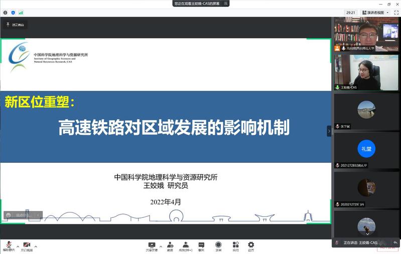 2022年4月1日,应yL23411永利官网登录、甘肃省绿洲资源环境与可持续发展重点实验室、西北城乡发展与协同治理研究院邀请,中国科学院地理科学与资源研究所王姣娥研究员做了题为《高速铁路对区域发展的影响机制》的学术报告,报告会由yL23411永利官网登录院长马利邦教授主持,学院近300名师生线上参加了本次学术报告。