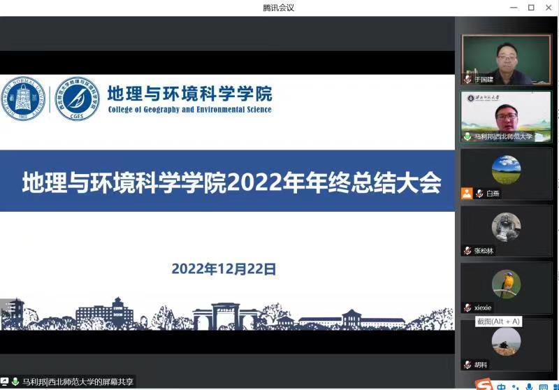马利邦院长最后强调,未来一段时间内学院需要重点开展以下四项工作:第一,强化一流本科专业建设点的建设工作,全院教师要协同一心,以培养卓越本科人才为目标,高标准高质量在持续提升专业建设水平和稳步提高人才培养质量的前提下推进一流专业建设;第二,持续关心关注青年教师的成长成才,青年教师作为学院未来发展的支柱力量,是学院教学科研取得突破性进展的关键人才,学院将在各项资源、政策等方面加大对青年教师的支持力度;第三,提升绿洲科学的建设水平,绿洲科学是学院未来学科发展的重点方向,学院将通过“学科带头人+项目+科研团队”的形式,借助《绿洲科学科研成果突破行动计划》,争取取得一系列标志性科研成果;第四,推进高质量科研平台建设,在完成甘肃省绿洲资源环境与可持续发展重点实验室验收工作基础上,努力申报教育部重点实验室。马利邦院长最后还就国家基金的申报、学生的健康与安全、寒假师生的安全等事宜做了重点安排。