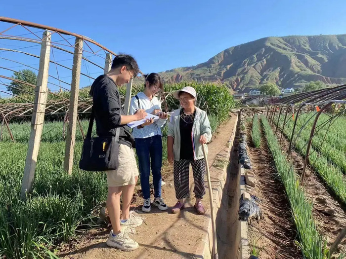 7月21日,师银芳老师课题组于兰州市七里河区采集种植兰州百合地里的土壤样本,测量其土壤组分,并向当地农户了解百合的生长种植信息。