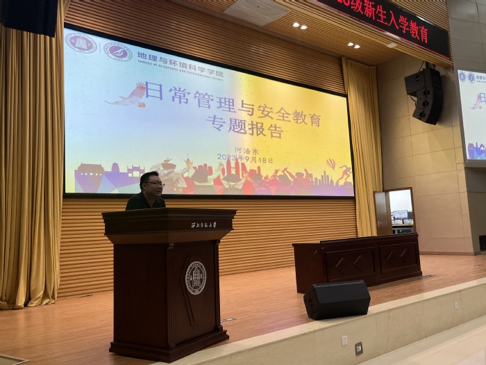 9月18日下午,yL23411永利官网登录在知行校区毅然报告厅举行2023级新生入学教育暨“民族政策教育、安全管理教育”系列活动。学院党委副书记、行政副院长谢文涛,全体辅导员以及2023级全体新生共计250余人参加了会议。会议由学院团委书记曹珍璇主持。