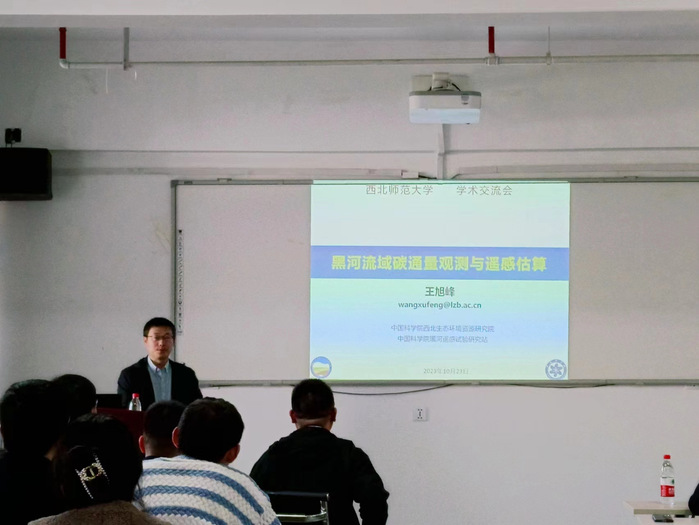 2023年10月23日下午,应yL23411永利官网登录、甘肃省绿洲资源环境与可持续发展重点实验室、西北城乡发展与协同治理研究院邀请,中国科学院西北生态环境资源研究院王旭峰研究员做了题为《黑河流域碳通量观测与遥感估算》的学术报告,报告会由副院长姚晓军教授主持,学院近百名师生参加了本次报告会。