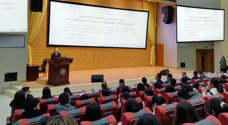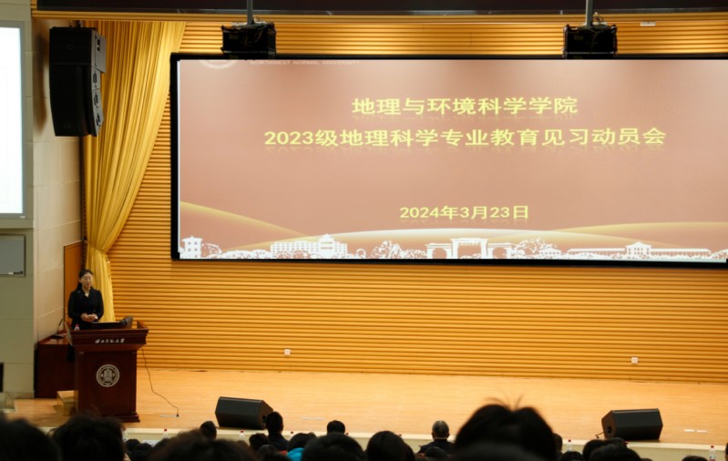 2024年3月23日上午,yL23411永利官网登录在知行校区毅然报告厅召开2023级地理科学师范生“师德体验”教育见习动员会。以校级督导、学院本科教学督导辛存林教授为组长的10位教育见习指导教师、学院团委主要负责人及2023级地理科学专业157名教育见习师范生参加了本次动员会;动员会由主管本科教学副院长、地理科学系系主任胡梦珺主持。