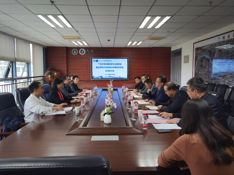 2024年10月9日下午,广州大学环境科学与工程学院党委书记郑美玲、副院长张鸿郭、环境工程系硕士学位点负责人张伟、环境科学系支部书记/副主任付善明一行四人来西北师大我院开展调研交流,交流座谈会在知行校区开物楼A912会议室召开,学院党委书记于国建、党委副书记/行政副院长谢文涛、副院长姚晓军教授、副院长潘竟虎教授、环境地理学博士点负责人辛存林教授、党委委员/党支部书记瞿德业副教授参会。座谈会由学院党委书记于国建主持。