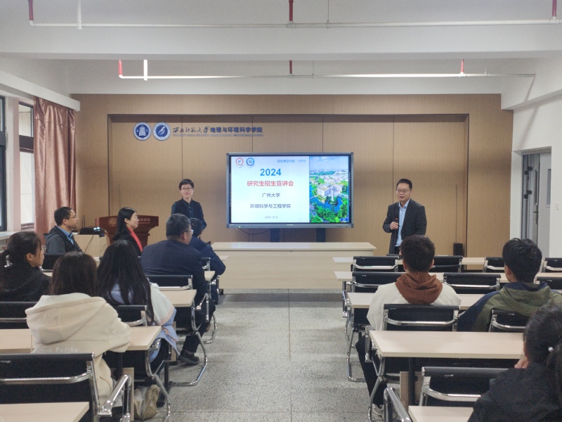 会后,广州大学环境科学与工程学院一行在开物楼A801会议室面向我院本科生开展了研究生招生宣讲,与参会的100多名本科生进行了亲切热烈的交流讨论,会后参观了学院实验室。