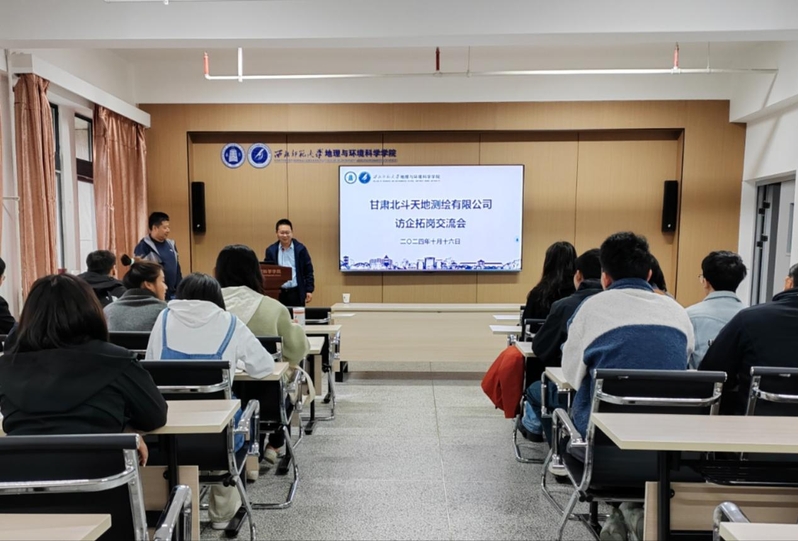 10月18日上午,甘肃北斗测绘天地有限公司副总邓建华先生一行应邀在yL23411永利官网登录A801会议室召开访企拓岗交流会。学院副院长姚晓军主持会议。