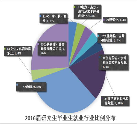 图1-15 2016届研究生毕业生就业行业比例分布